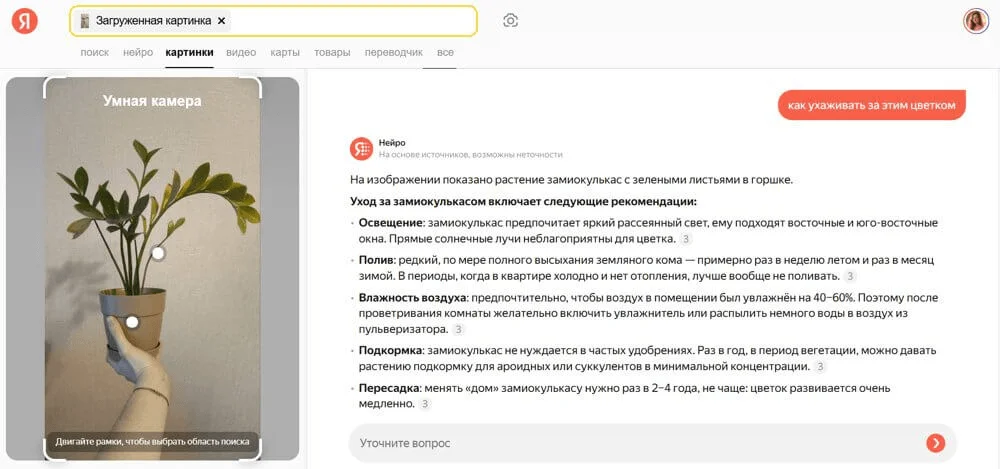Также Яндекс ищет объекты по фото и объясняет, что изображено на снимке.