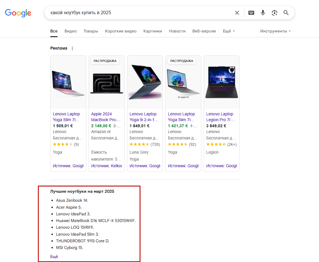 Также сильно пострадали сайты с обзорами товаров. Google теперь генерирует собственные рекомендации на основе анализа множества источников и отправляет пользователей напрямую в магазины, минуя обзорные сайты.