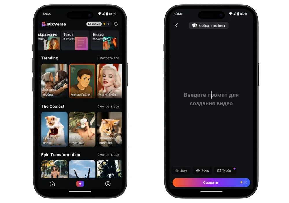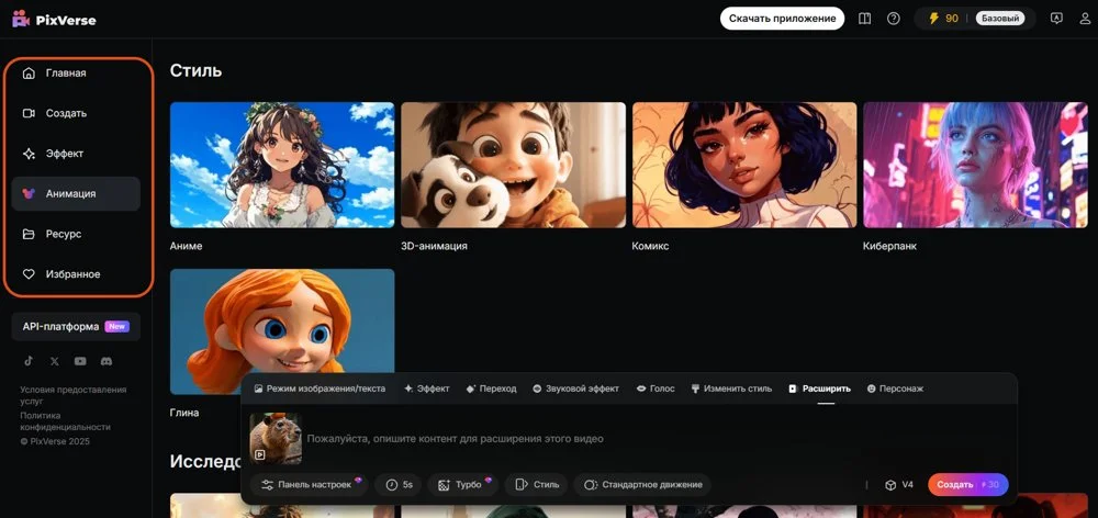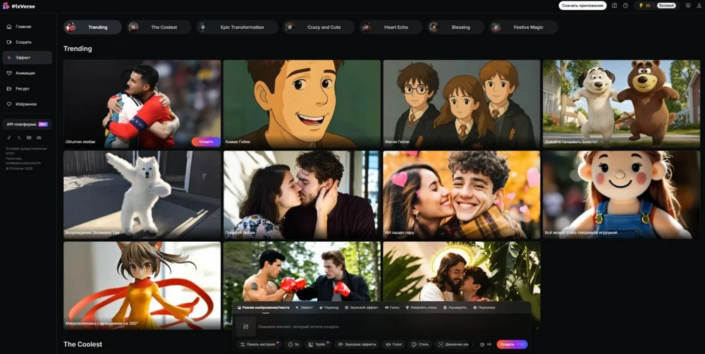- Простота. Даже если вы никогда не работали с нейросетями, разобраться в Pixverse можно за пару минут. Интерфейс понятный, а процесс создания видео не требует навыков монтажа.