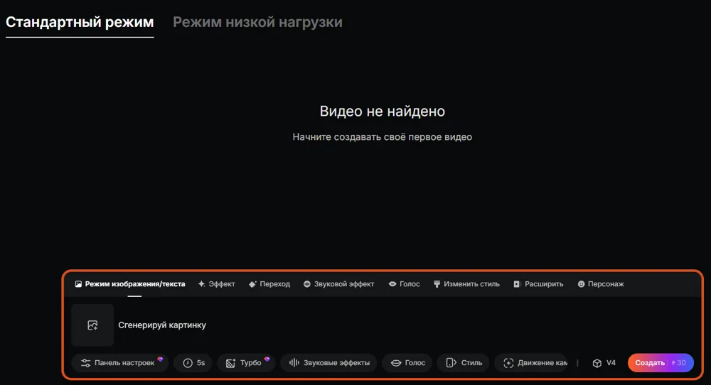 Режим изображения/текста. Генерирует видео по референсу-изображению или текстовому промпту. Например, можно загрузить свое фото и попросить нейросеть оживить его.