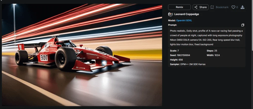 На сайте OpenArt собрана большая библиотека изображений с примерами промптов. Доступен поиск по ключевым словам. Чтобы посмотреть промпт, нужно нажать на изображение — он появится справа. Для каждого промпта указана модель нейросети, на которой он был протестирован.