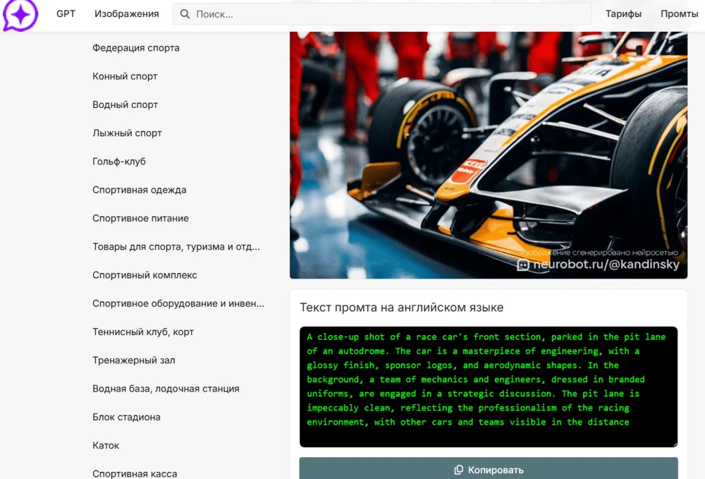 Сайт на русском языке с библиотекой из более чем 11 000 промптов для генерации изображений. Доступен поиск по ключевым словам, также есть каталог с разбивкой на узкие темы — например, оптовая торговля, строительные услуги, машиностроение. Большинство промптов проверены на нейросети Kandinsky. Все формулировки даны на английском языке.