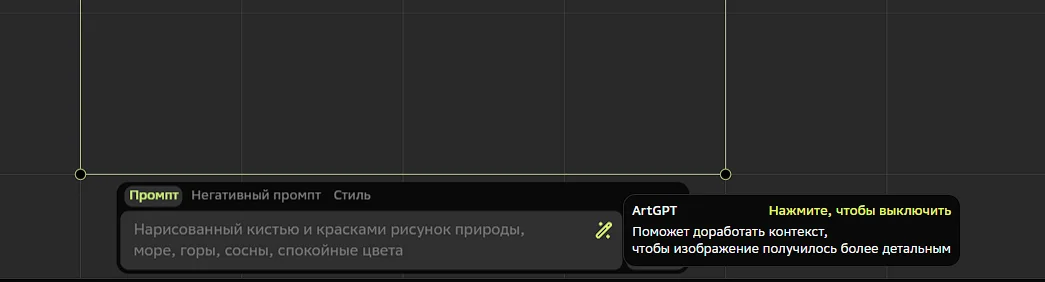 Разработчики Kandinsky советуют делать запрос как можно более детальным. Но по нашему опыту, если указать слишком много слов, нейросеть начинает путаться и пропускает часть текста.