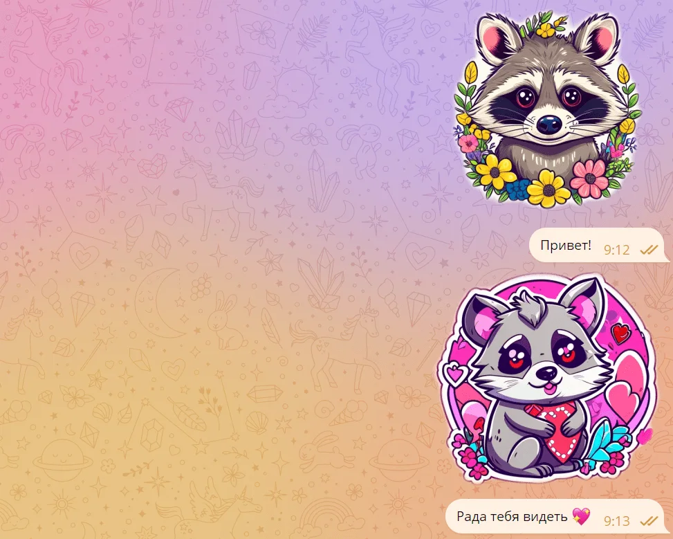Можно сгенерировать стикерпак, чтобы публиковать его в канале и повышать вовлеченность аудитории. Для этого в Telegram-боте Kandinsky есть специальный режим — он по умолчанию создает работы только в мультяшном стиле и без фона.