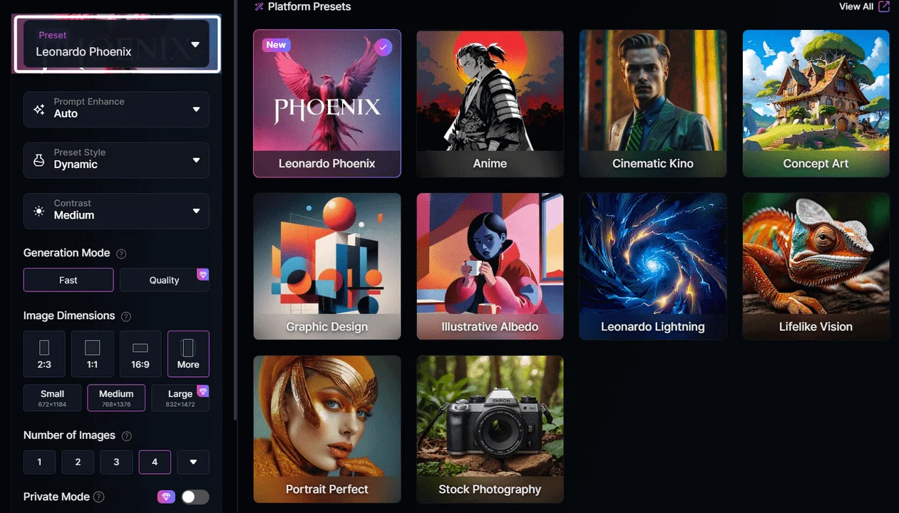 Private Mode. В платной версии можно скрывать ваши сгенерированные изображения от других пользователей.
