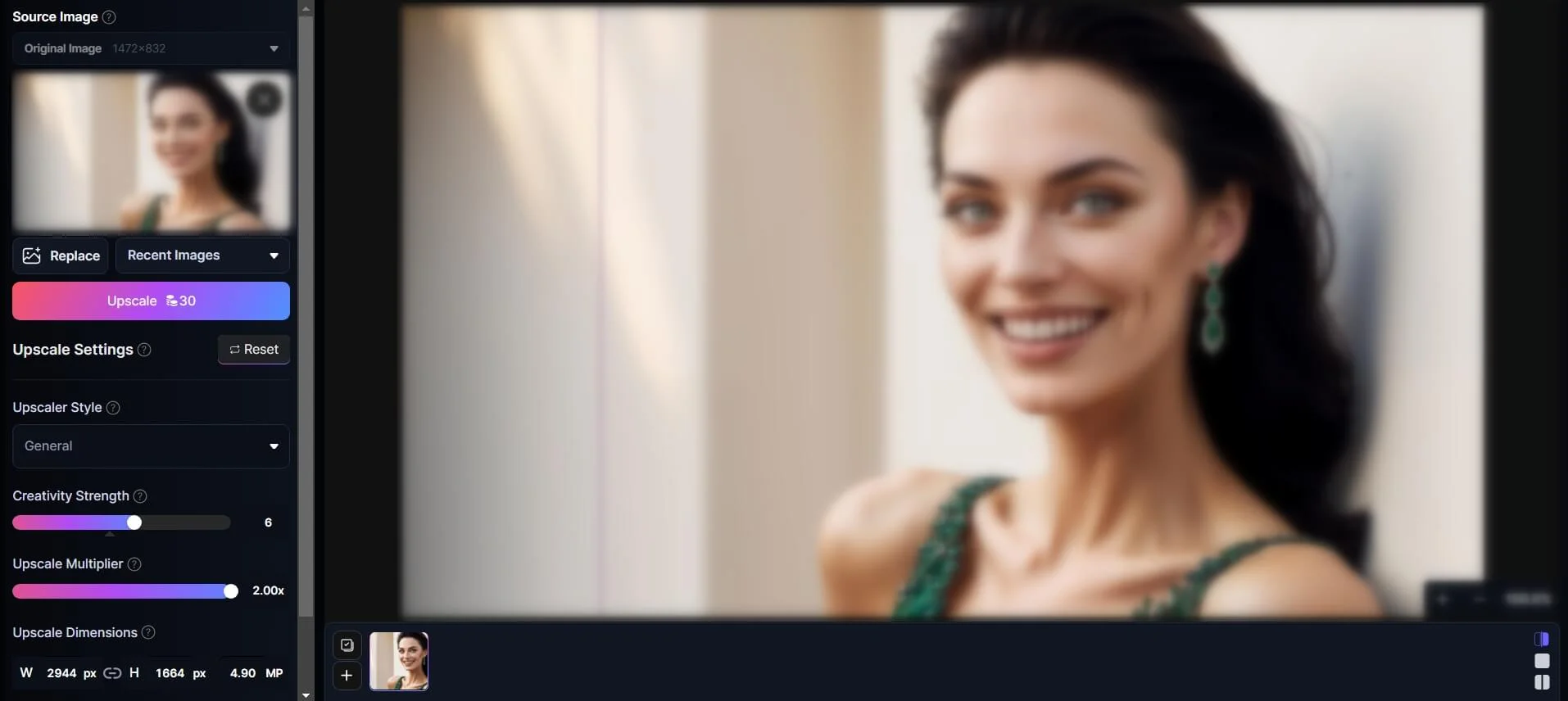 В этом же инструменте можно изменить стиль иллюстрации и настроить Creativity Strength (силу креативности). Т.е. насколько сильно нейросеть может фантазировать при добавлении деталей в процессе обработки.