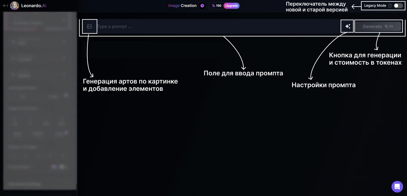 Теперь разберемся с настройками и попробуем сгенерировать картинки. Начнем с поля для ввода промпта.