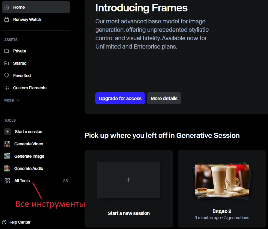 Другие инструменты нейросети Runway