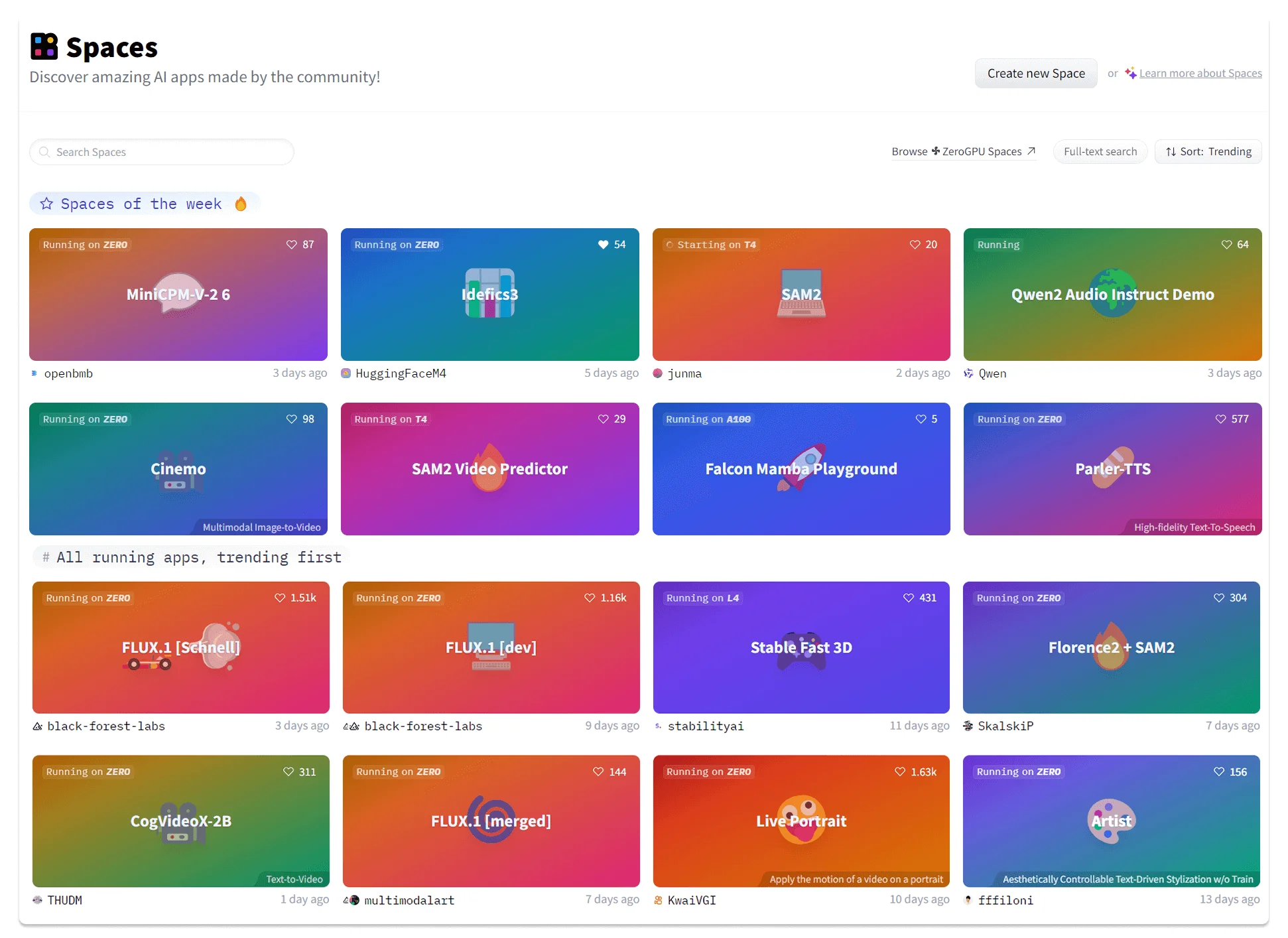В Spaces собраны все нейросети — ими можно пользоваться бесплатно. Здесь есть пространства и для работы с изображениями, видео, текстами, музыкой. Вариантов много, но не все дают качественный результат.
