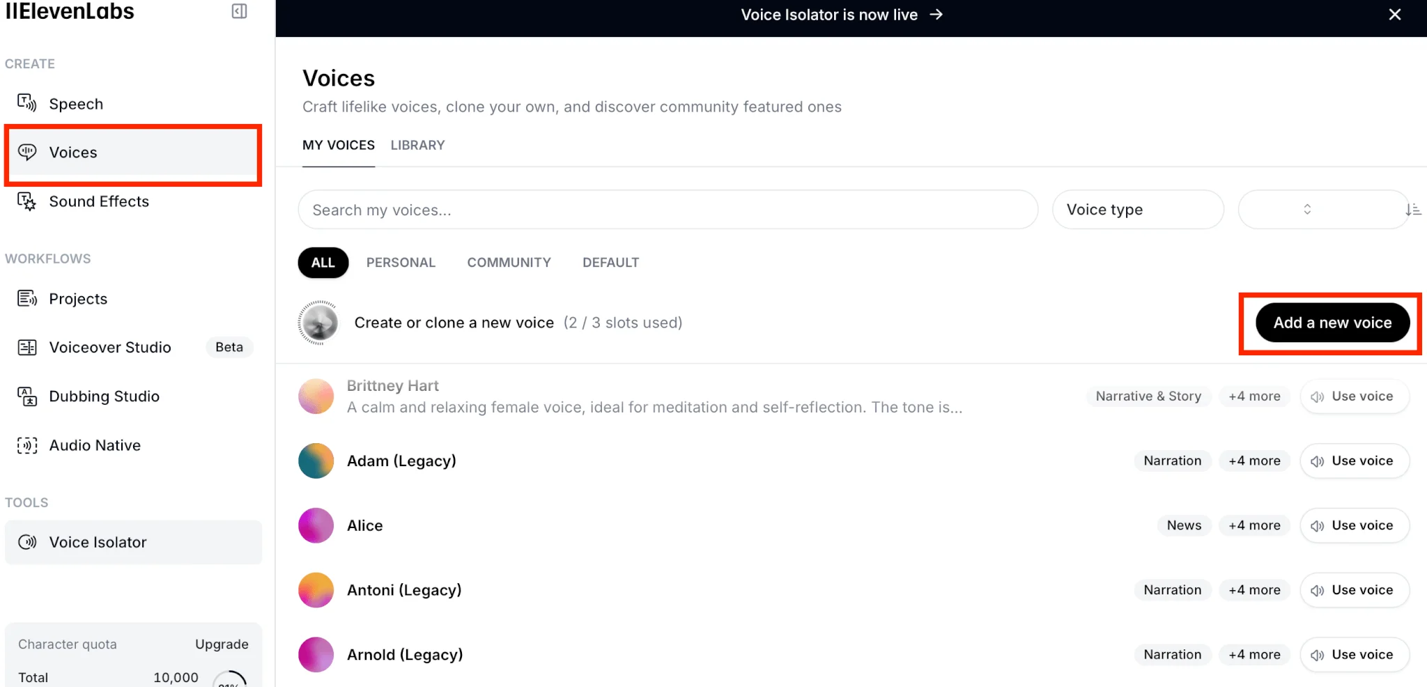 В разделе «Voices» выберите «Add a new voice».