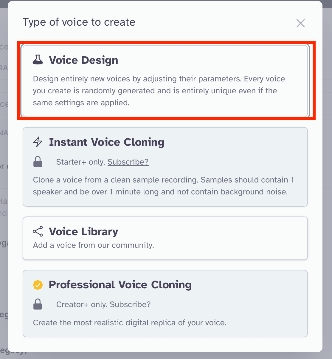 Далее нажмите «Voice Design».