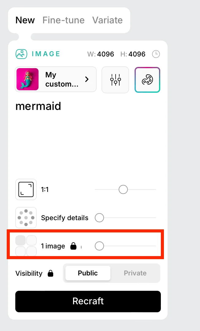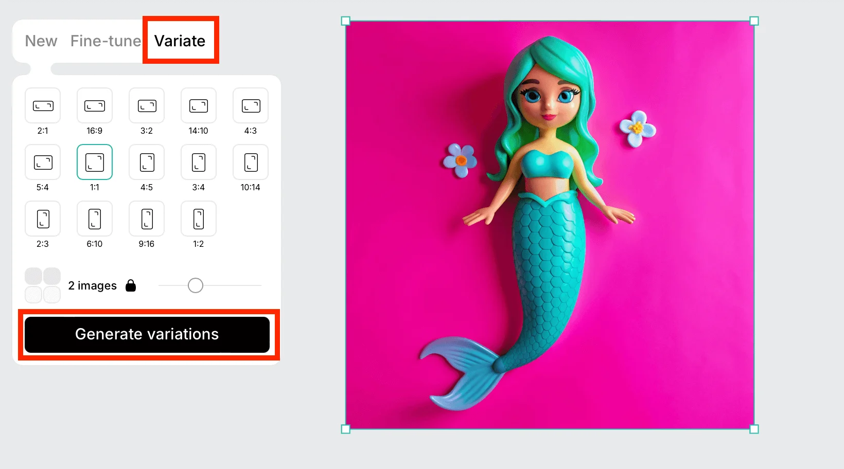 Вы можете сгенерировать изображение в разных размерах. Например, для мобильного экрана и десктопа. Перейдите в раздел Variate, выберите нужные параметры и нажмите Generate variations.