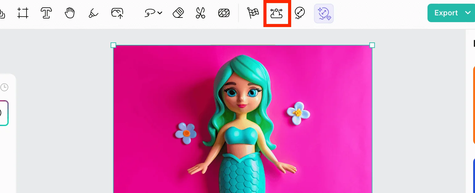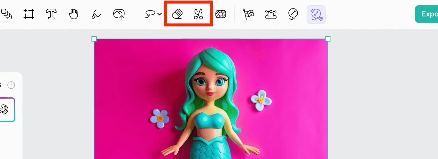 Если нужно удалить фон, щелкните на изображение и выберите значок Ножниц на панели управления. Остатки фона можно убрать с помощью ластика по соседству.