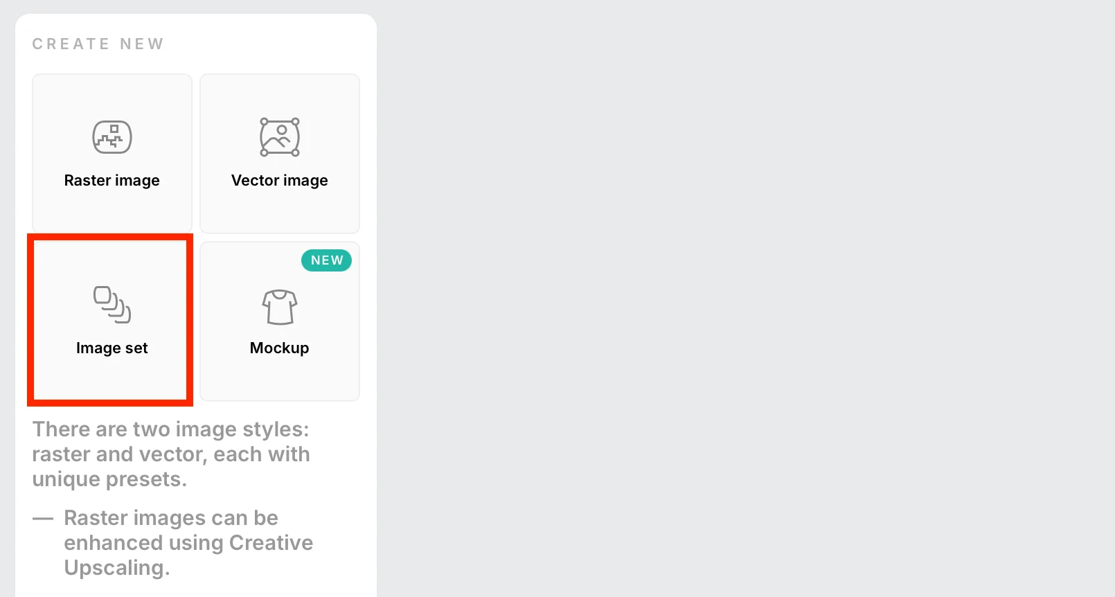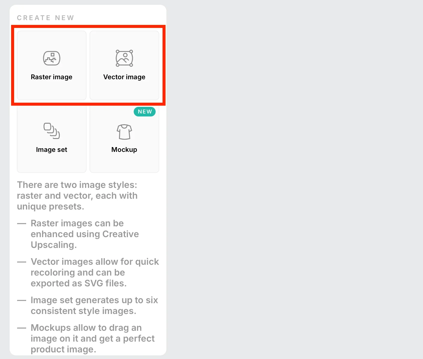 Чтобы сгенерировать обычное изображение, выберите Raster Image, для векторного нажмите Vector Image.