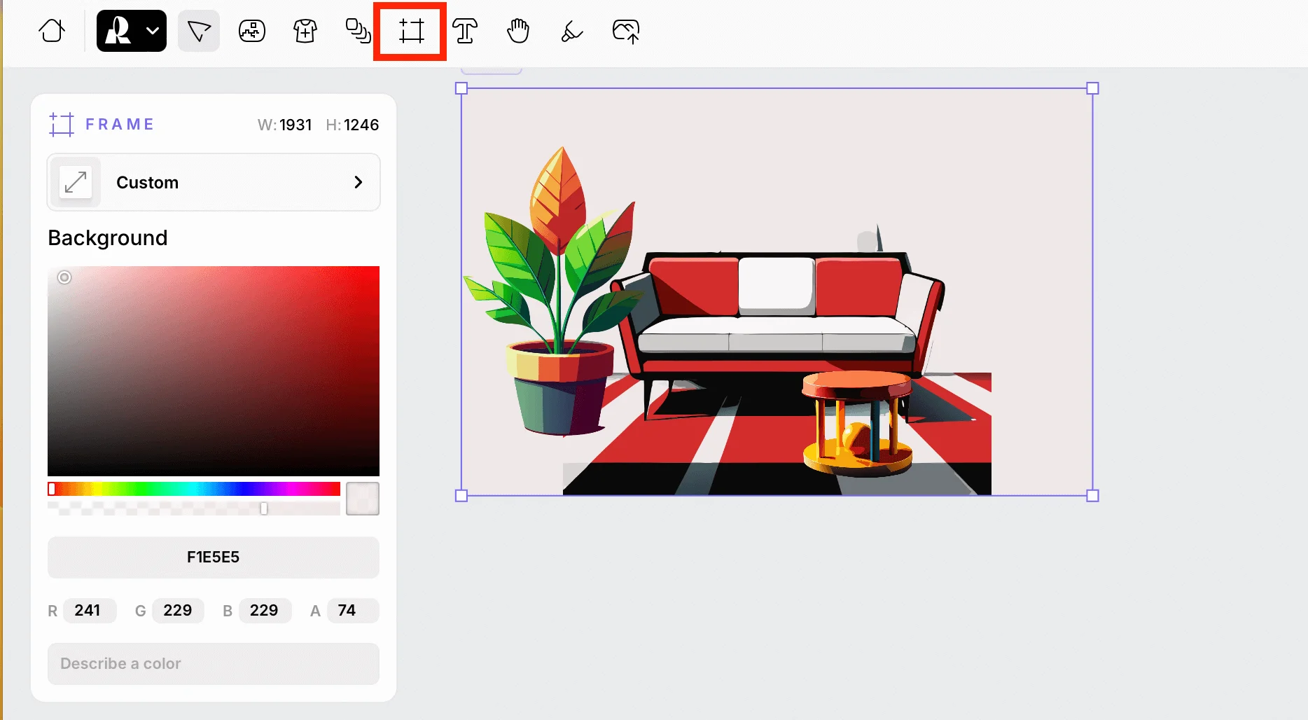 Как и в Figma, здесь есть возможность объединить несколько векторных изображений в одном фрейме и создать иллюстрацию. В верхней панели выберите кнопку Frame или нажмите клавишу F. Поместите изображения в фрейм, предварительно удалив фон. Готовую иллюстрацию можно экспортировать и использовать, например, как обложку для статьи.