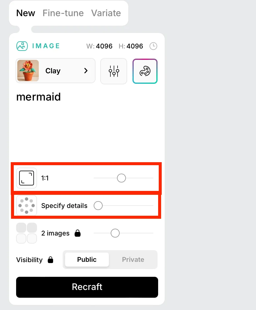 Выберите размер изображения и детализацию. По умолчанию стоит Specify details — если хотите получить картинку с высоким уровнем проработки, не меняйте настройку.