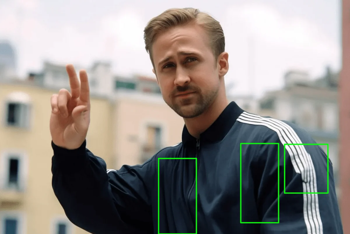 Одежда. Несмотря на богатый опыт в изучении деталей одежды, нейросети не обладают чувством вкуса и не разбираются в функциональности отдельных предметов одежды. Поэтому факт генерации могут выдать несовпадающие пуговицы, нелепые банты, невозможные складки, странные сочетания.
