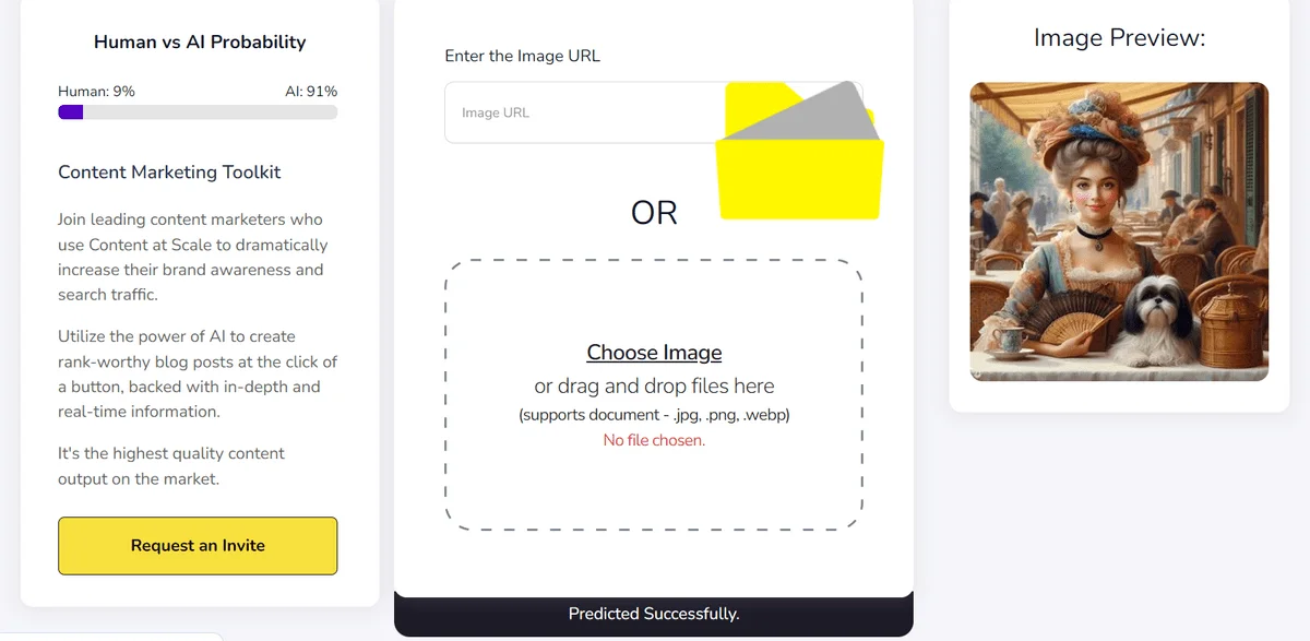 Content At Scale обучен на изображениях от DALL-E, Midjourney, StableDiffusion, поэтому распознаёт работы этих нейросетей с большей вероятностью. Использовать инструмент можно бесплатно.