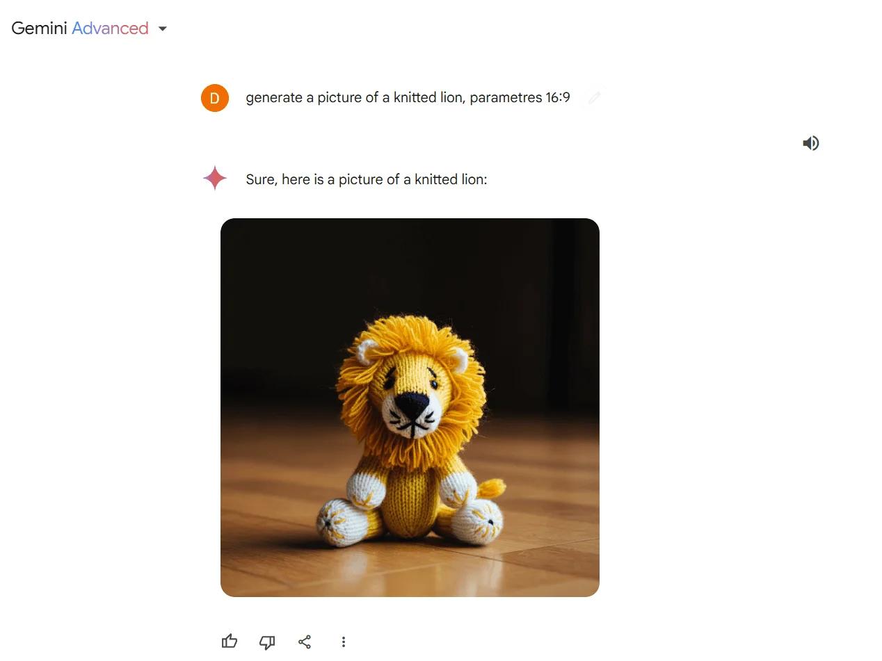 Генерирует изображения. Пока эта функция доступна в Gemini Advanced, а запросы можно отправлять на английском языке. Нейросеть дает один вариант изображение 1х1 — редактировать или менять его нельзя. Покупать подписку только ради иллюстраций точно не стоит.
