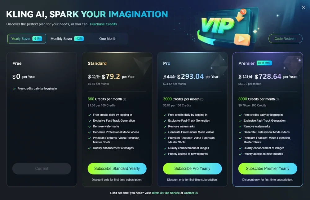 Есть бесплатная версия. В ней пользователь получает 66 кредитов в день. Генерация одного видео в стандартном режиме стоит 10 кредитов, в профессиональном — 35. Одной картинки — 0,20 кредитов по текстовому промпту и 0,30 — с дополнительным референсным изображением.