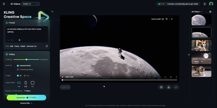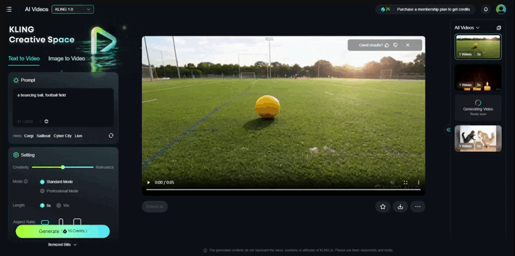 Kling AI генерирует точные и качественные видео даже в бесплатной версии. Простую работу сервис создает около 5 минут, но с некоторыми запросами пока не справляется: с определенным количеством элементов или сложной физической траекторией.
