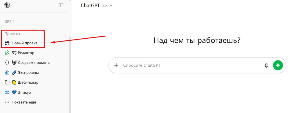 Мы подготовили системный промпт, который нужно загрузить в инструкции к рабочему пространству. Например, в ChatGPT нужно выбрать в меню слева «Новый проект», затем указать название. А на следующем этапе перейти в «Настройки проекта» и загрузить промпт.