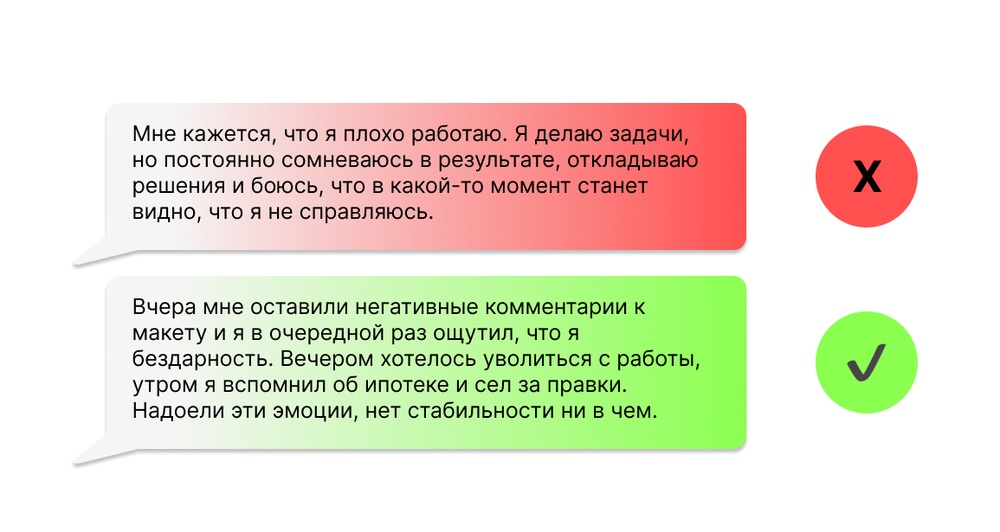 ИИ помогает безопасно разобрать свои мысли, сравнить ожидания с реальностью и вернуть внимание к конкретным шагам. Например, если ощущается сомнение — соответствует ли результат негласным стандартам, не выглядит ли работа слабее чужой. Нейросеть подскажет, это факты или абстрактная оценка.