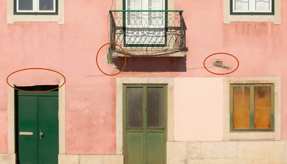 Результат. Hama хорошо справилась с задачей — убрала провода, дорисовала тень от балкона на стене. Мы выделили кистью большой участок, но нейросеть не оставила артефактов и не задела важные детали. Например, решетку балкона. Единственное, что пропало — табличка с номером над дверью.