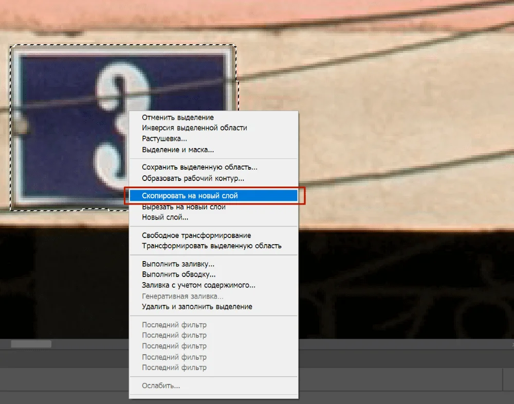 Кликаем по «Быстрому выделению» и выбираем табличку. Затем нажимаем по ней правой кнопкой мыши и далее по функции «Скопировать на новый слой».