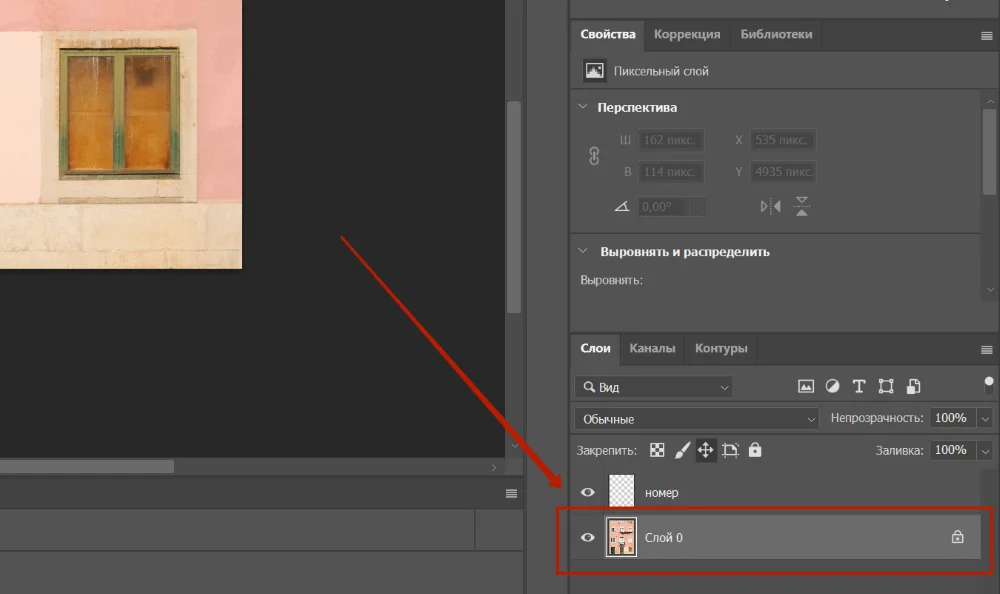 Способ №1 — с помощью «Точечной восстанавливающей кисти». Перед тем, как применить этот инструмент, скопируем на новый слой важные детали. Например, решетку балкона или номер над дверью.