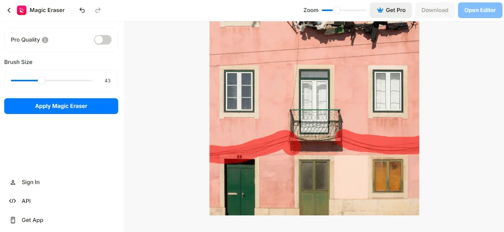 Функции. Ненужные объекты нужно закрашивать кистью. Чтобы изменить размер кисти, можно передвигать ползунок «Brush Size» слева. А чтобы увеличить фотографию — параметр «Zoom» вверху экрана.