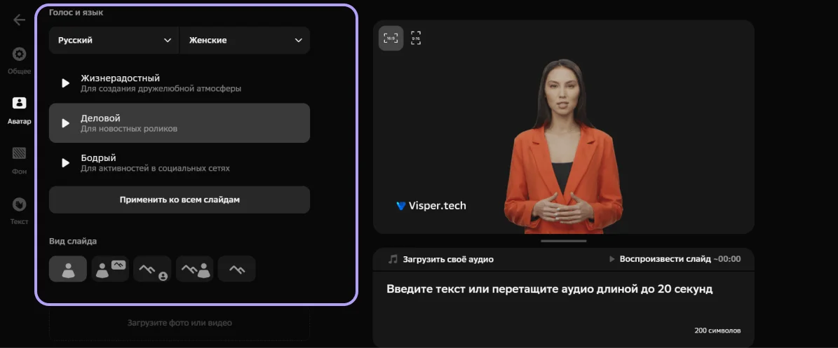 - использовать AI-аватаров, которые зачитывают ваш текст;