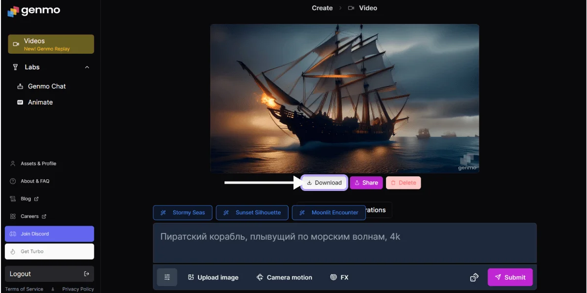 - использовать ИИ-помощника Genmo Chat, который в режиме диалога помогает генерировать идеи.