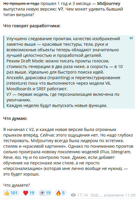 Иногда автор пишет свое мнение о трендах или сравнивает инструменты. Если нужно быстро сориентироваться, что нового появилось в мире AI — канал точно поможет.