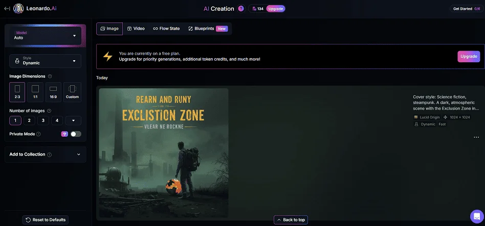 Стоимость: есть бесплатный план с ограниченным количеством токенов, которые можно использовать для генерации изображений. Платная подписка — от $10/мес.