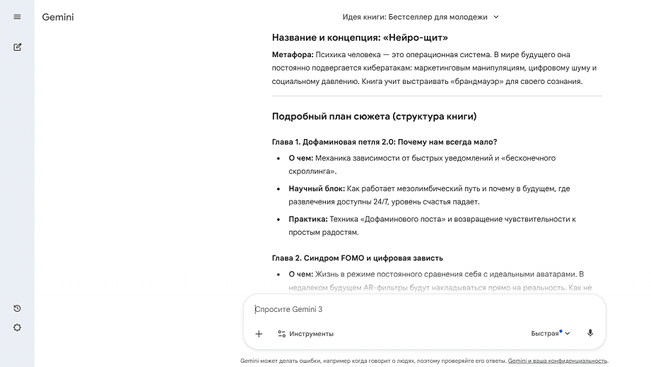Ограничения: возможны галлюцинации, особенно в бесплатной версии, нужно проверять актуальность данных и достоверность источников, если используете в книге цитаты и ссылки на других авторов.