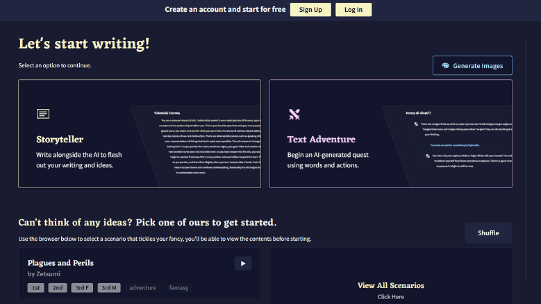 Может работать в двух режимах: Storyteller (работа по вашим наброскам) и Text Adventure (нейросеть выступает в роли соавтора и помогает развивать сюжет на ходу).