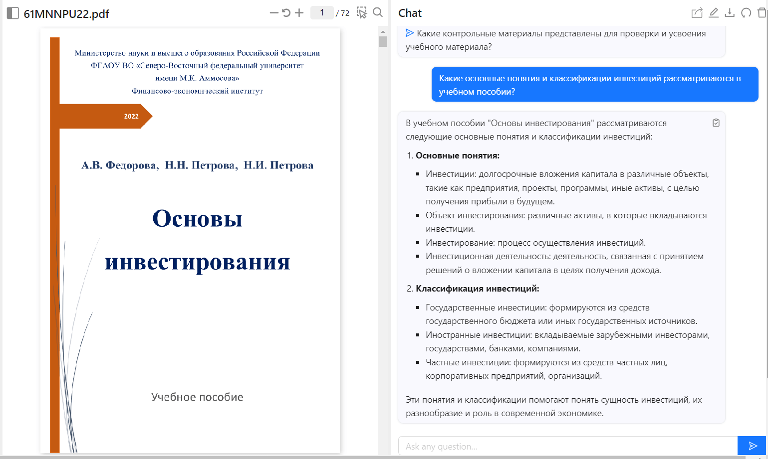 В бесплатной версии можно загрузить только 2 PDF-файла и задать 2 вопросов. В платной версии доступно неограниченное количество PDF и запросов. PDF-файлы должны быть меньше 2000 страниц и 32 MБ.