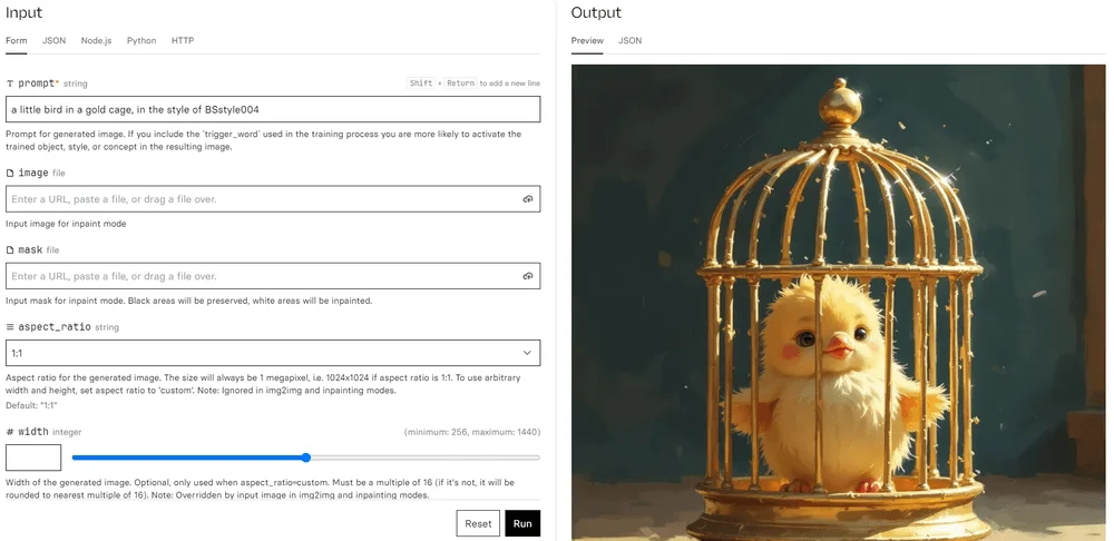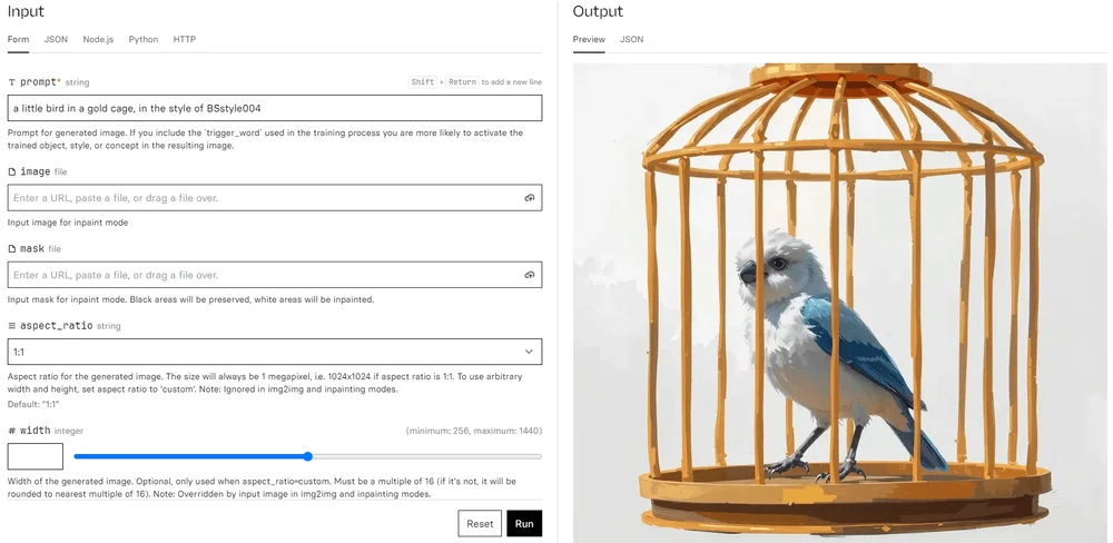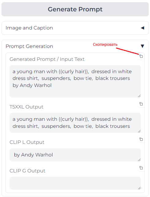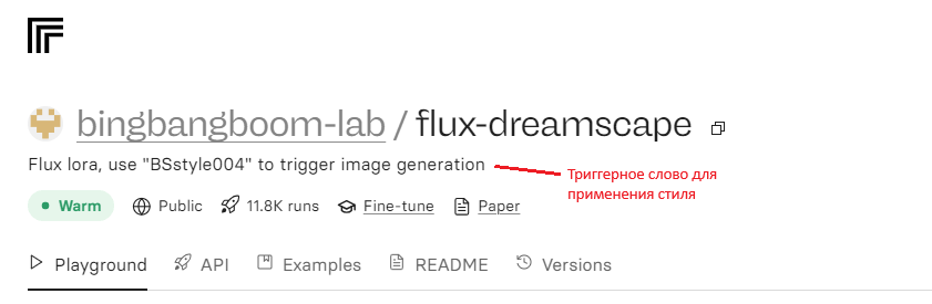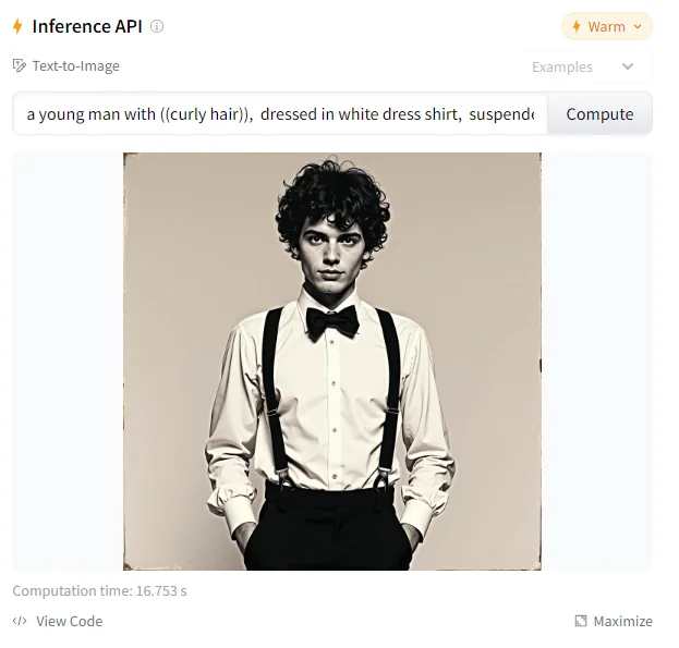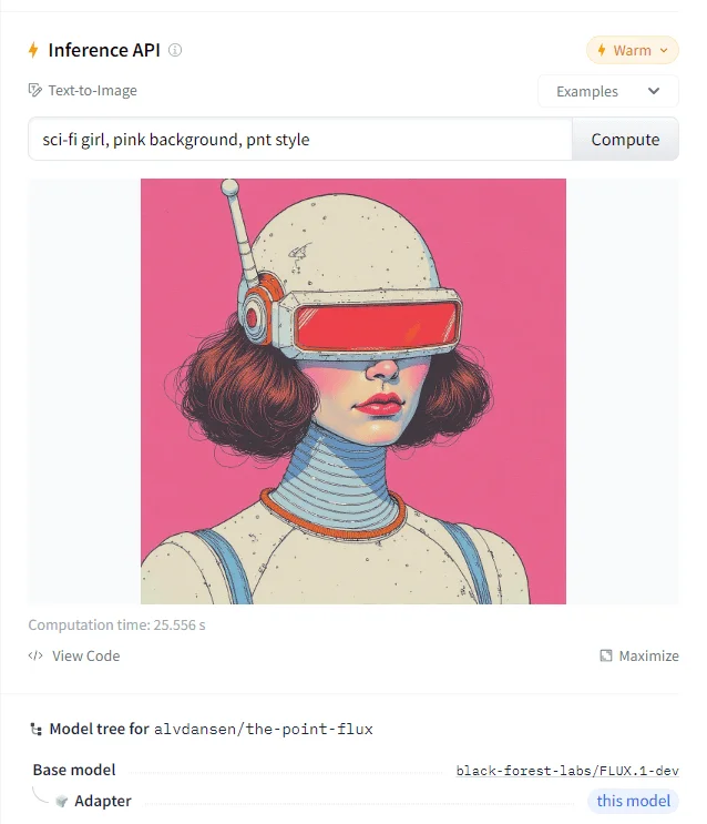 Протестированный скопированный запрос можно в модели на HuggingFace или Replicate.