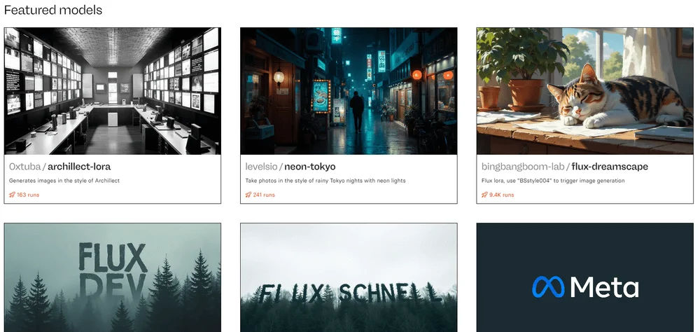 Протестируем вариант с избранными моделями. Страница с ними откроется, если нажать на featured models. Мы для примера протестируем модель flux-dreamscape.