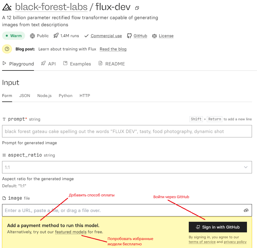 Как попробовать FLUX [dev] в Replicate
