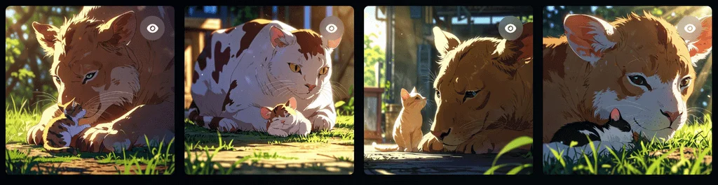 Часто у нейросетей для генерации картинок или видео встречаются одни и те же баги. И самый распространенный — это ошибки при попытке сгенерировать много всего. Допустим, если попросить нарисовать несколько разноплановых персонажей одновременно, искусственный интеллект может запутаться и выдать что-то странное, как в нашем примере ниже. Мы попросили нейросеть Leonardo AI изобразить льва, кошку, корову и мышь, а программа объединила некоторых животных в одно.