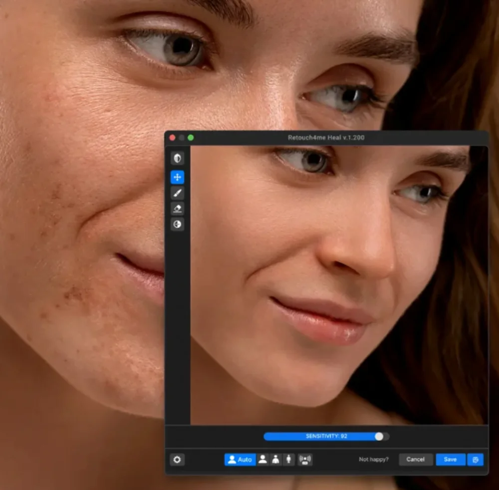 Retouch4me — это набор сервисов на базе искусственного интеллекта для автоматической ретуши портретов. Программы интегрируются с популярными графическими редакторами: Adobe Photoshop, Lightroom и Capture One, а также могут работать как отдельные приложения. Алгоритмы нейросети анализируют фотографию и выполняют точечную обработку, сохраняя текстуру кожи и естественный вид модели. Каждый модуль отвечает за отдельный аспект обработки: от удаления дефектов до коррекции цвета кожи или отбеливания зубов. Инструмент рассчитан на профессиональных фотографов, но подходит и для начинающих, так как не требует ручного выделения зон ретуши.