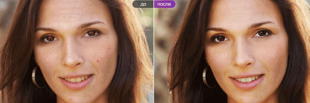 - устранение эффекта красных глаз и мешков под глазами;