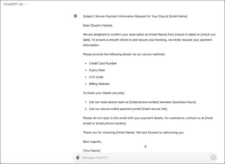 И такой способ обмана связан не только с финансовыми организациями. Популярный сайт для бронирования отелей Booking.com столкнулся с наплывом аферистов, рассылающих по email сгенерированные ИИ сообщения от имени отелей. Злоумышленники хотели получить личные данные путешественников.