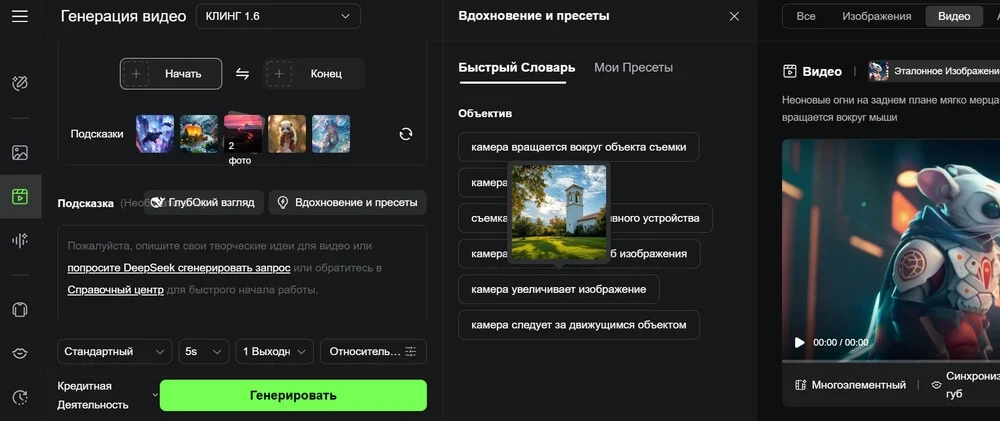 Создайте сцены. По готовым кадрам и текстовому описанию сцен нейросети Kling, SORA или Runway могут собрать сцены с простыми переходами. В сервисах есть готовые пресеты движений — облет, наезд и удаление камеры, съемка панорамы города.