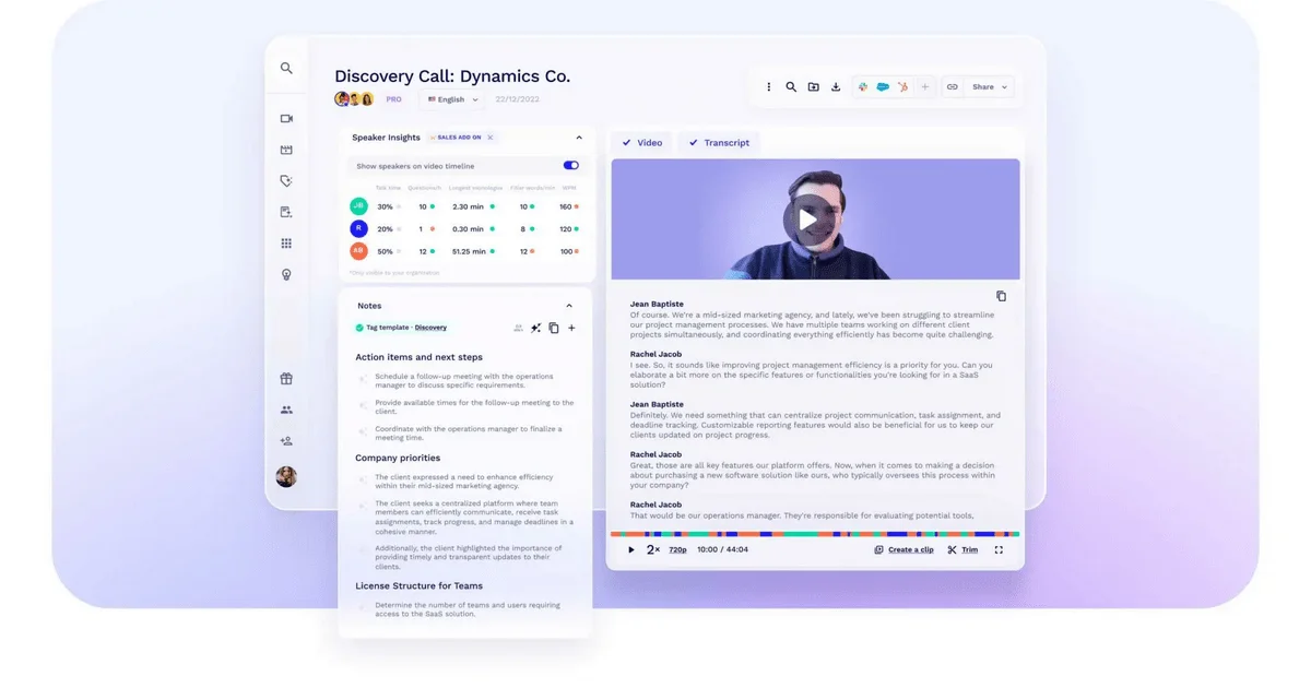 - У tl;dv есть ИИ-коучинг: сервис оценивает ход совещания и дает персонализированные рекомендации сотрудникам, как улучшить свои soft skills.