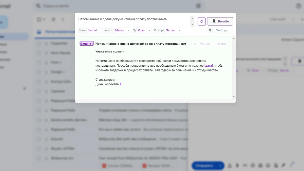 Ассистенты быстро напишут ответ и помогут красиво оформить письмо.